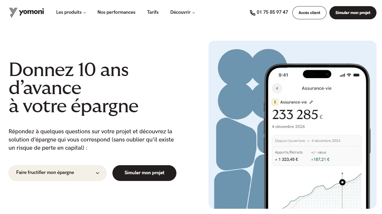 La gestion pilotée est une excellente solution si vous manquez de temps ou de connaissances pour sélectionner vos titres. Yomoni est le leader sur ce segment avec une offre claire : des frais de gestion tout compris de 1,6 % par an. Certes, c'est plus cher qu'une gestion libre via des ETF (où les frais tournent autour de 0,2 % à 0,3 %), mais vous payez ici la tranquillité d'esprit et l'expertise d'une équipe qui gère l'allocation d'actifs pour vous. C'est un choix de confort très pertinent pour de nombreux épargnants.